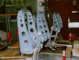 gerade rechtzeitig konnte über Ebay ein Paar Boeing 727 Steuersäulen beschafft werden. Diese wurden auf eine Achse aus Aluminiumrohr montiert, die Steuerhörner durch das Alurohr mit Stahlseil verbunden und synchronisiert. Die Achse wurde mit 16 Rollschuhkugellagern gelagert, die Steuersäulen werden durch zwei kräftige Spiralfedern in senkrechter Mittelstellung gehalten.